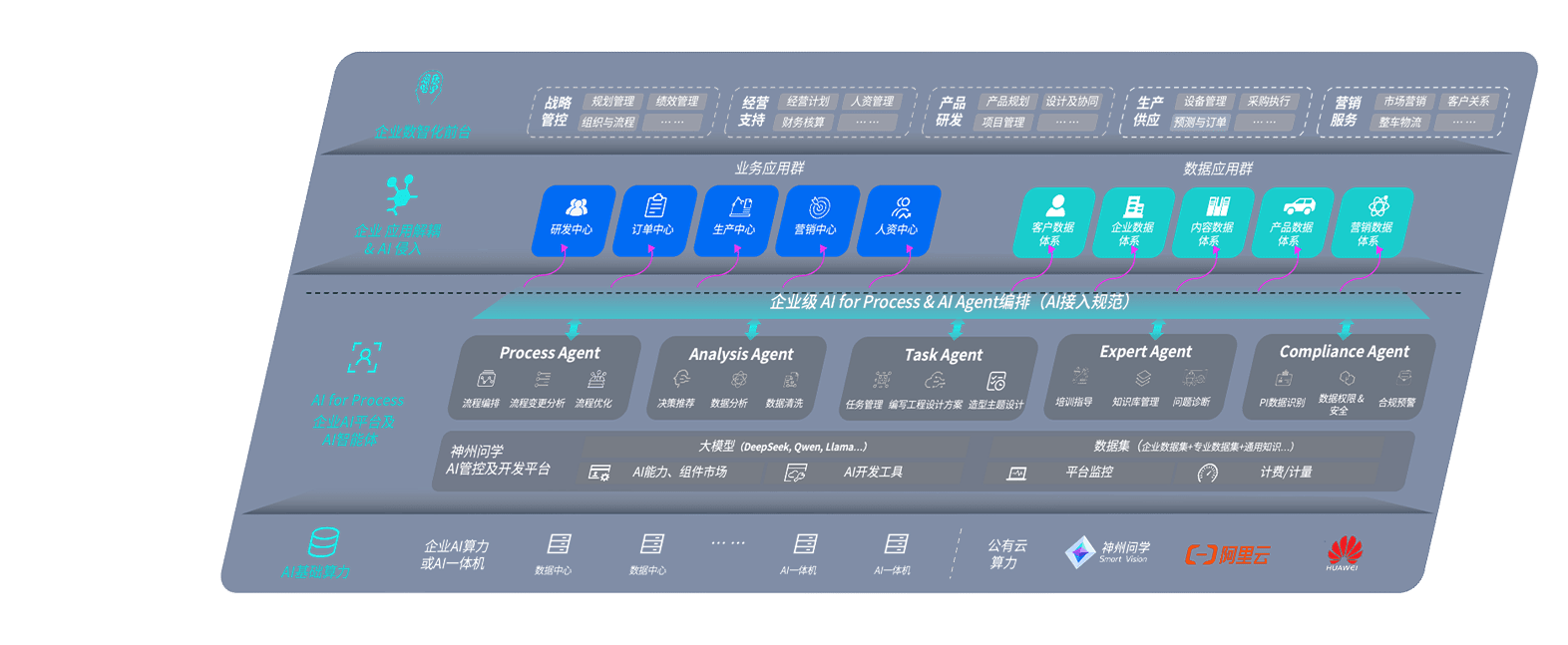 壹号平台问学智车解决方案是一套基于AI技术的汽车行业智能化系统,,,,覆盖从底层算力到顶层AI应用的全栈方案。。。方案由算力层、、、模型层和应用层组成:算力层,,方案支持多种一体机配置,,,具备云端灵活部署、、、多云适配以及动态优化计算资源的能力;模型层,,壹号平台问学平台版提供了企业级AI应用一站式构建与管理平台,,支持基于后训练强化技术的汽车企业专属模型的训练、、、评测和运营;应用层,,壹号平台问学DeepSeek版提供包括超级员工、、、、智能招采、、、智能营销、、智能客服、、AI for BI等一系列解决方案,,可助力汽车行业实现数字化转型,,让管理更智能、、、响应更敏捷。。。。